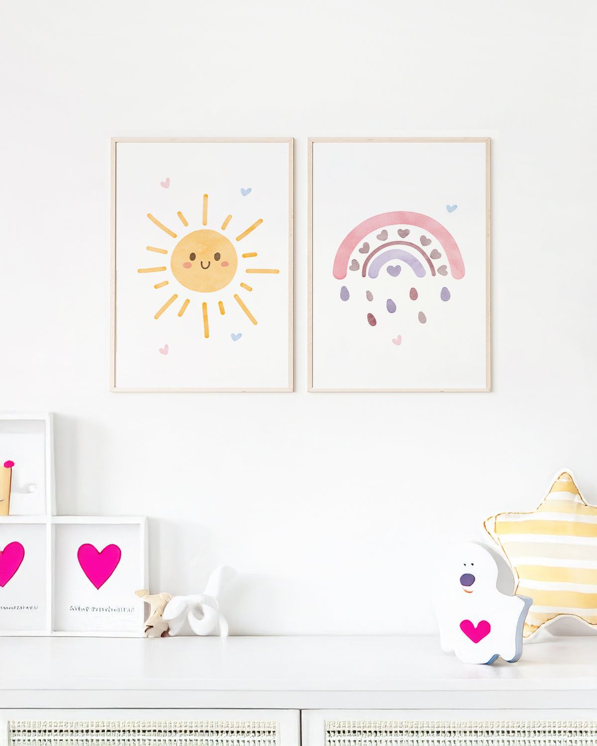 Todos os nossos quadros acompanham vidro acrílico cristal — um material leve, lindo e perfeito para quartos infantis, que não estilhaça.