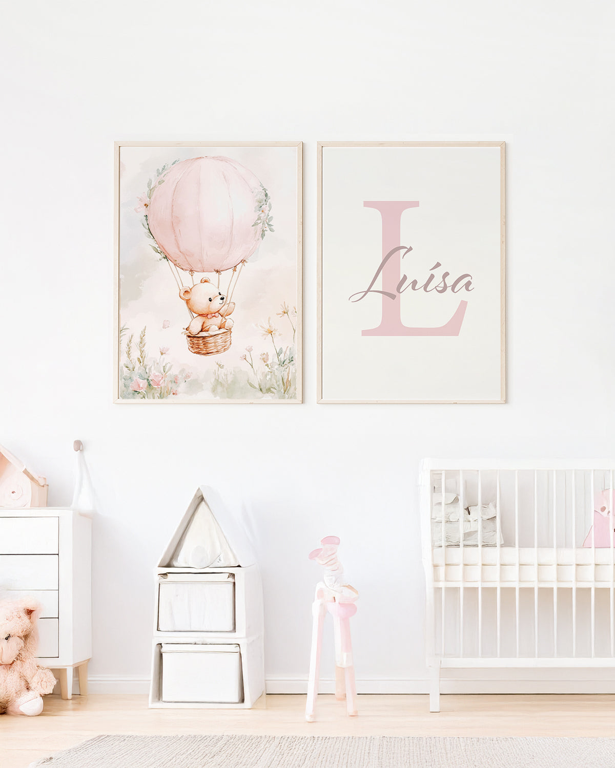 Este kit exclusivo inclui dois quadros delicados para decorar o quarto de bebê ou infantil, com uma charmosa ilustração de urso em balão. Personalizados com o nome e a inicial da criança, os quadros conferem um toque único e sofisticado ao ambiente, promovendo aconchego e identidade ao espaço. Ideal para mães que buscam beleza e exclusividade na decoração dos pequenos.