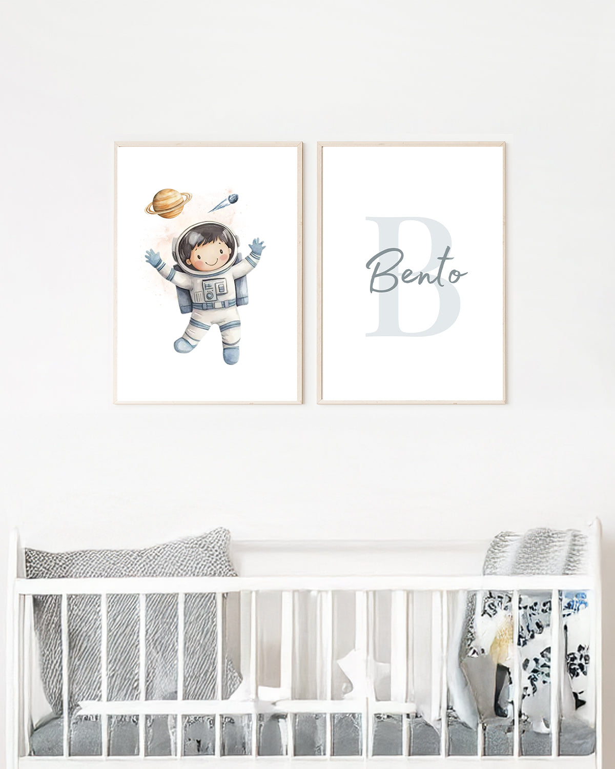 Transforme o quarto do seu filho em uma aventura cósmica com este elegante kit de dois quadros personalizados. Cada peça apresenta um design sofisticado com tema de astronauta e exploração espacial em tons de azul, criando uma atmosfera inspiradora e moderna. Personalize com o nome e inicial do seu pequeno explorador, tornando a decoração única e significativa. Perfeito para criar um ambiente que estimula a imaginação enquanto mantém a estética refinada do espaço infantil. Uma escolha sofisticada para pais que valorizam design de qualidade e personalização.