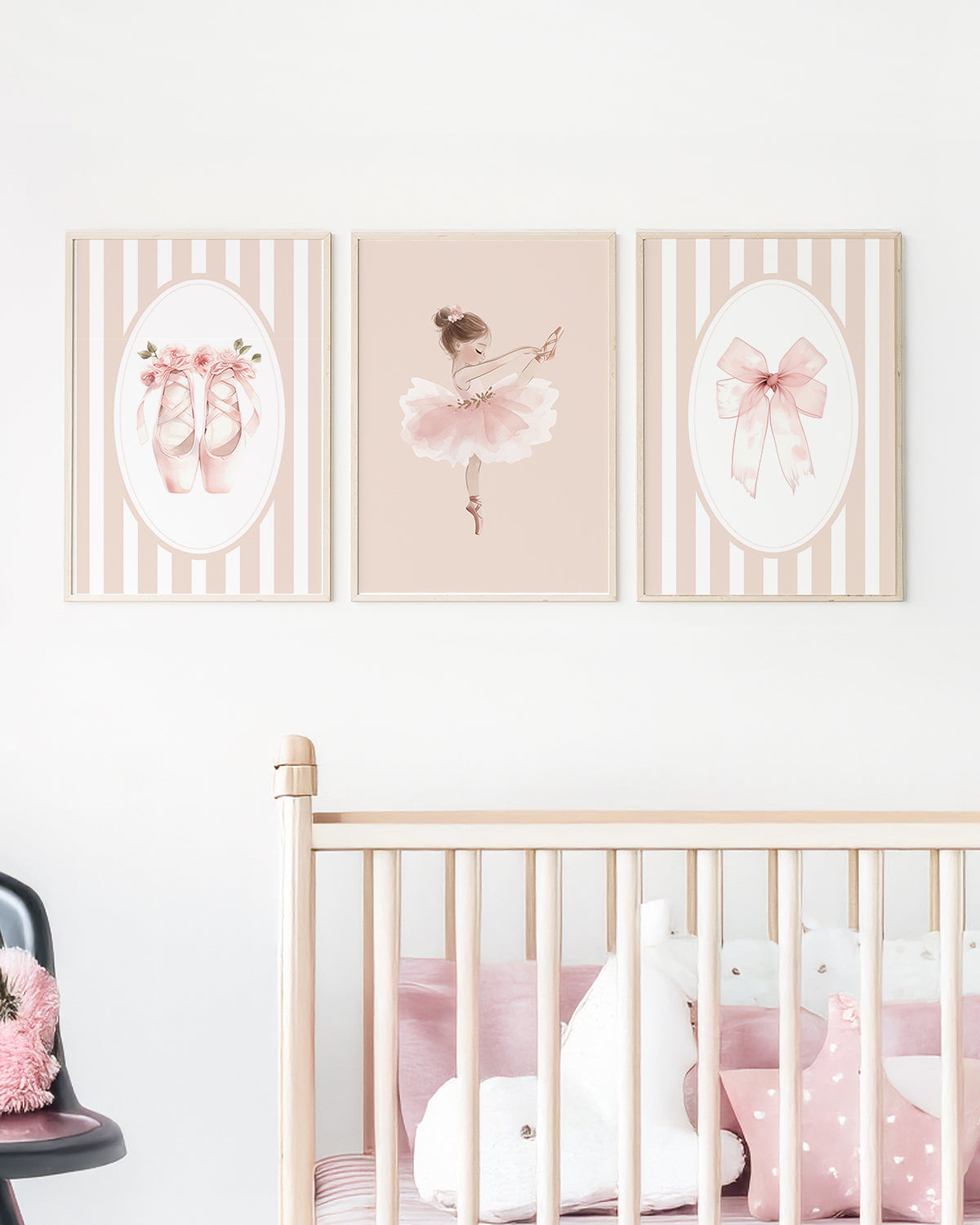 Kit 3 Quadros Infantil Quarto Bebê Menina Bailaria Ballet Rosa Laço e Sapatilha