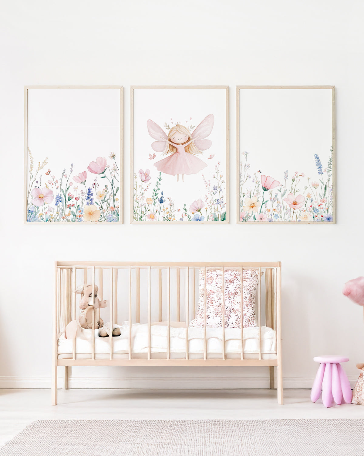 Kit 3 Quadros Infantil Quarto Bebê Menina - Jardim das Fadas - Fadinha Loira