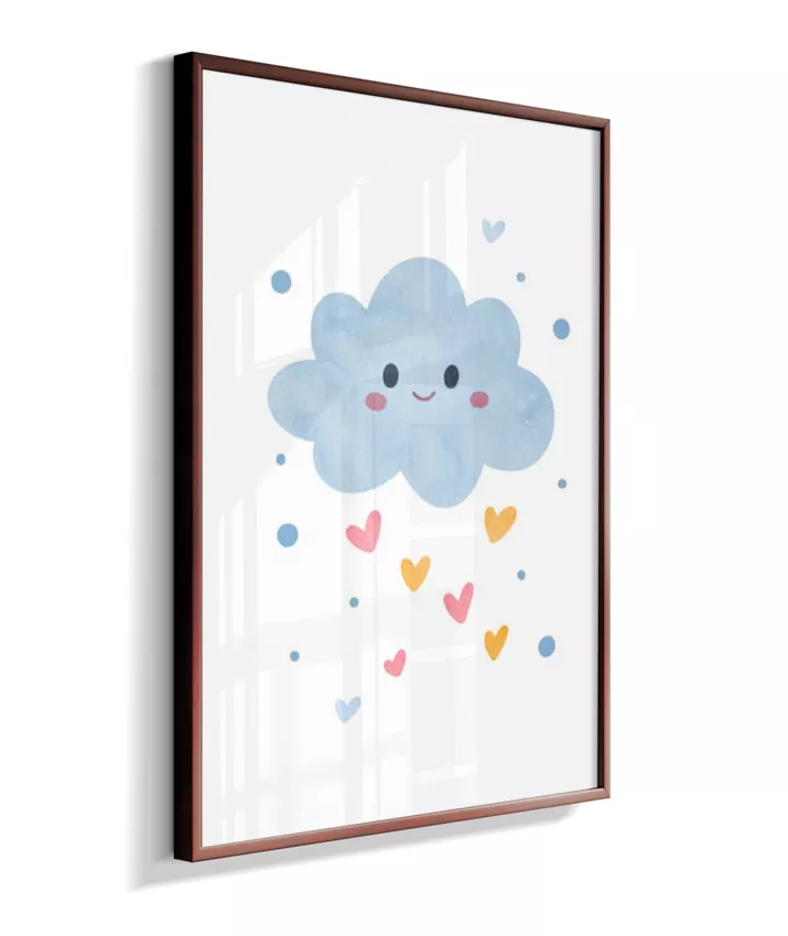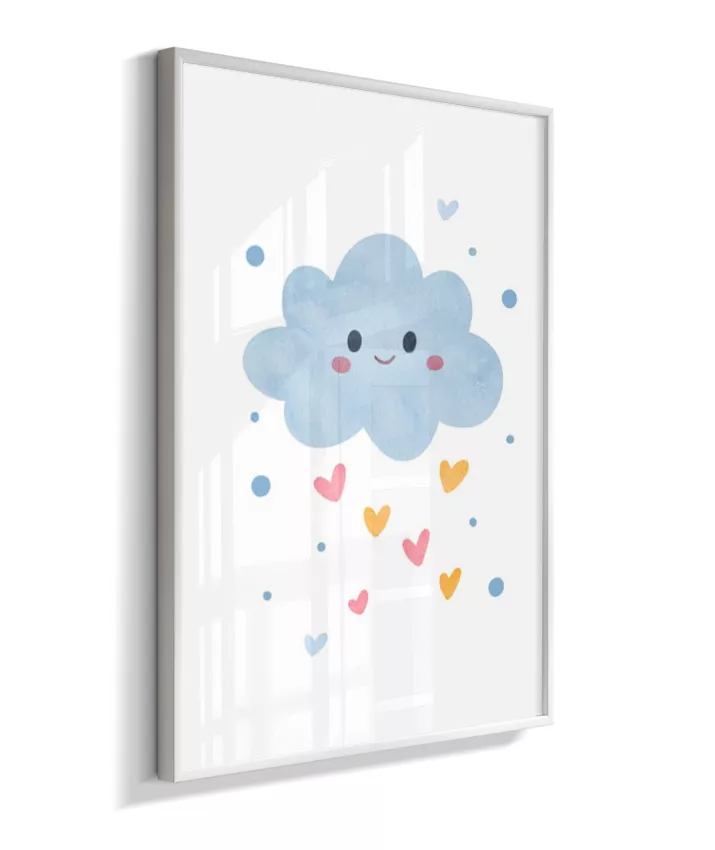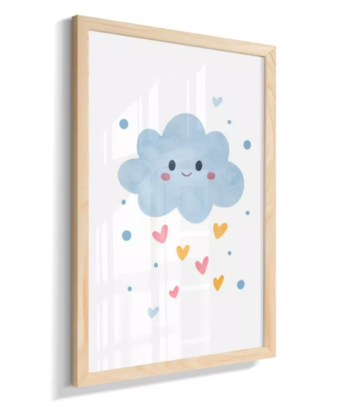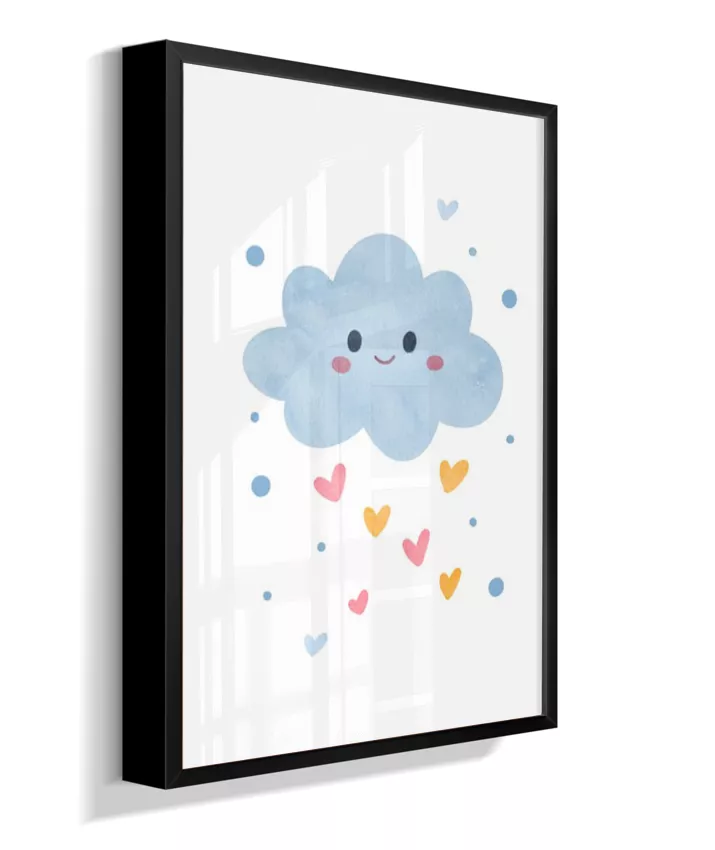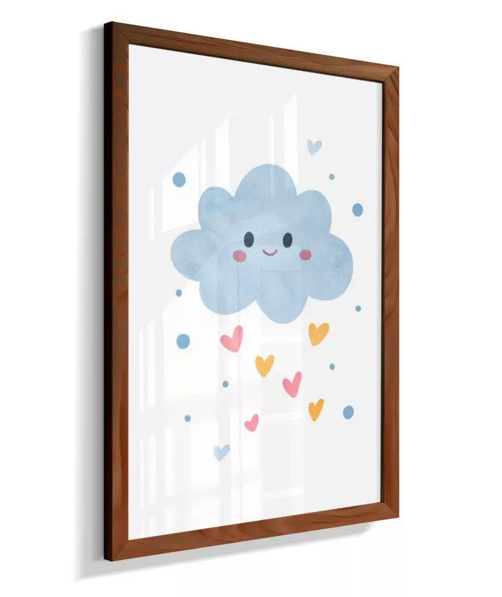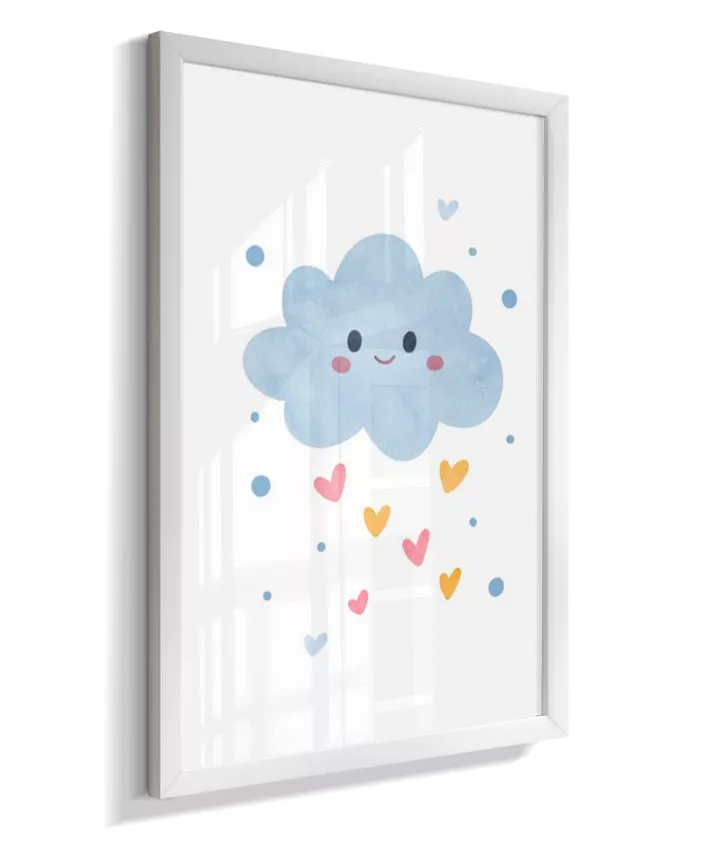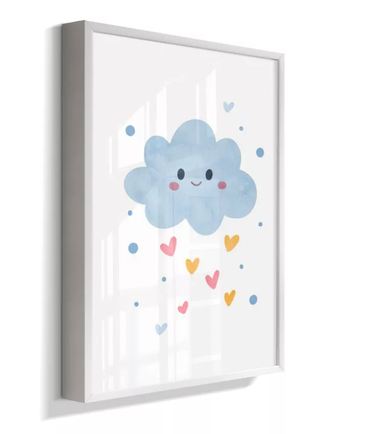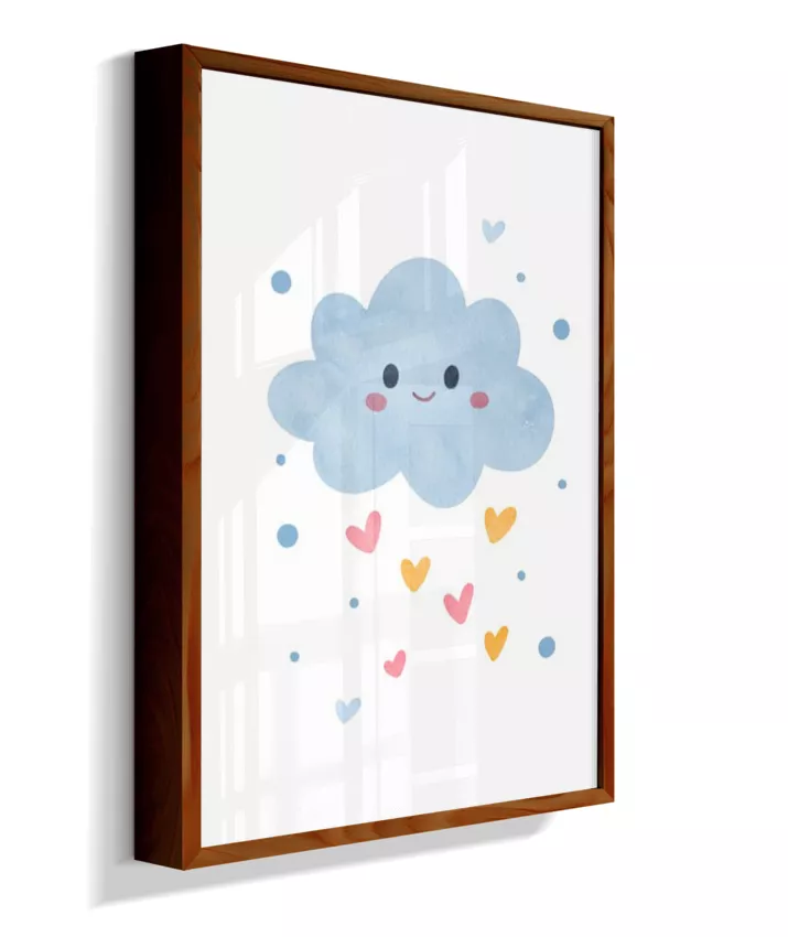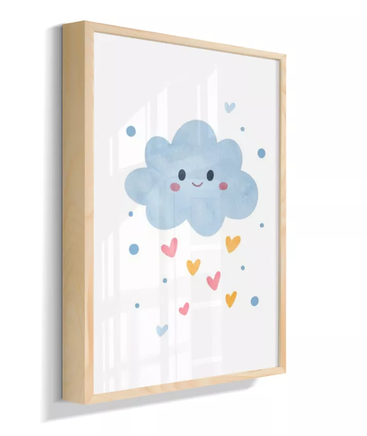 Todos os nossos quadros acompanham vidro acrílico cristal — um material leve, lindo e perfeito para quartos infantis, que não estilhaça.