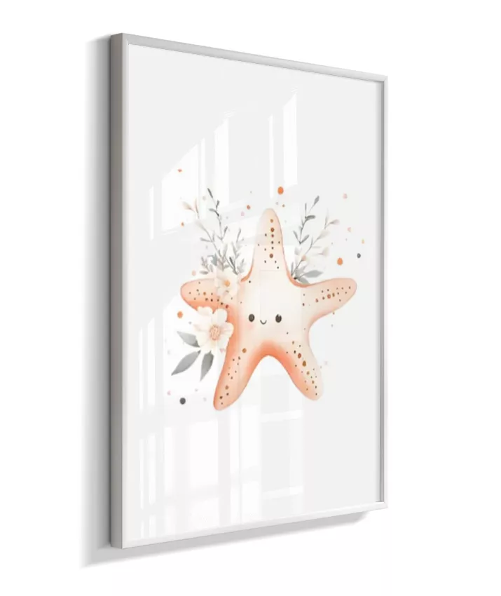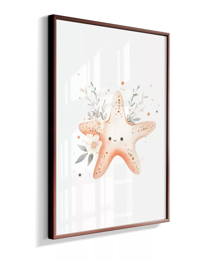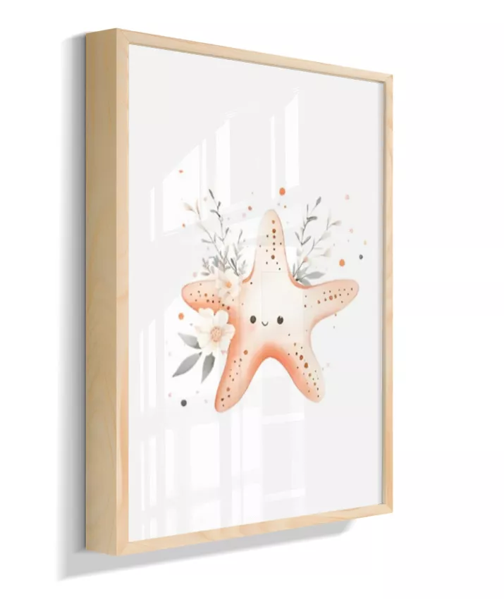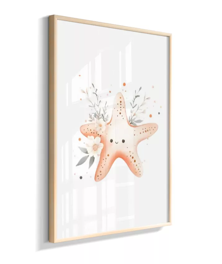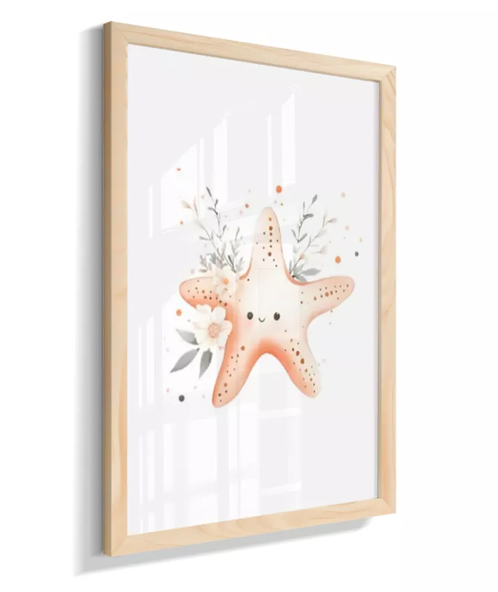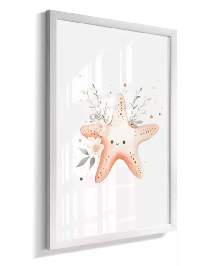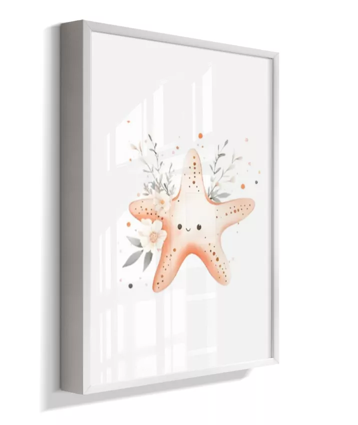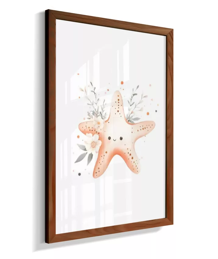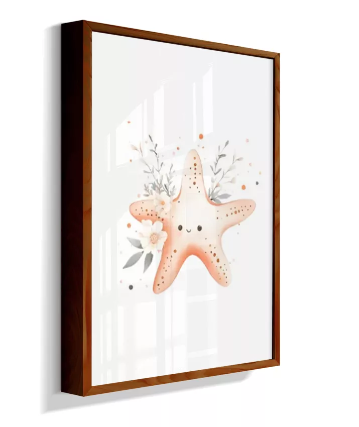 Quadro Infantil Decorativo Fundo do Mar Floral Estrela do Mar