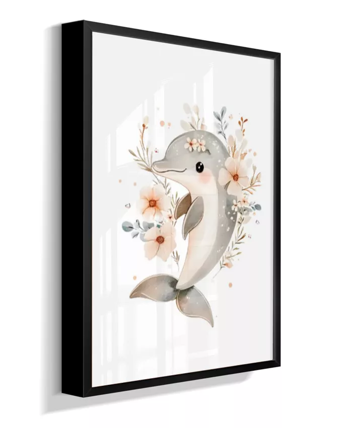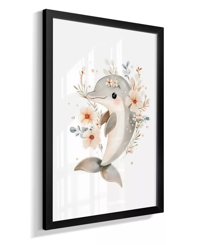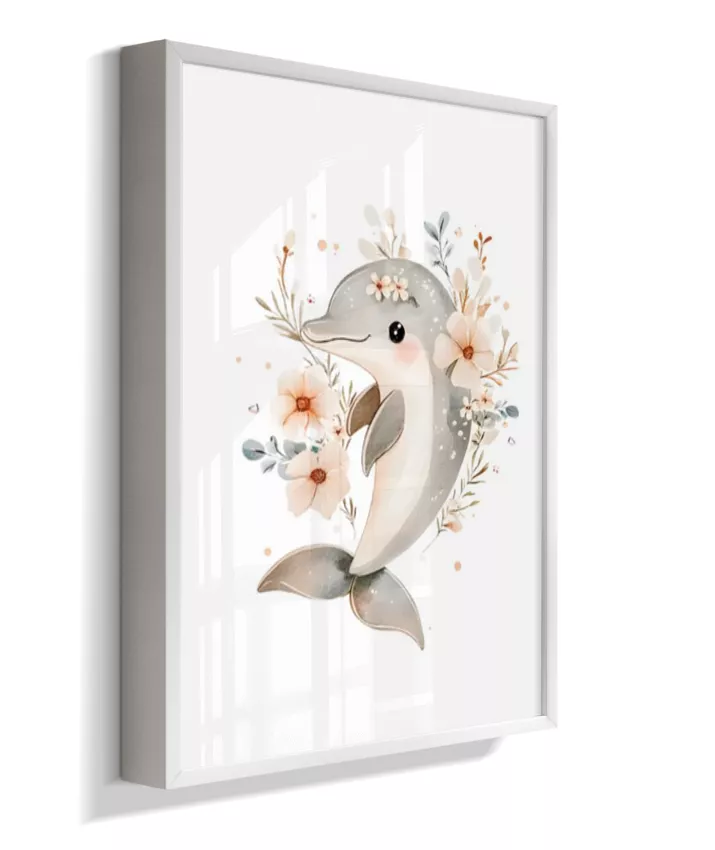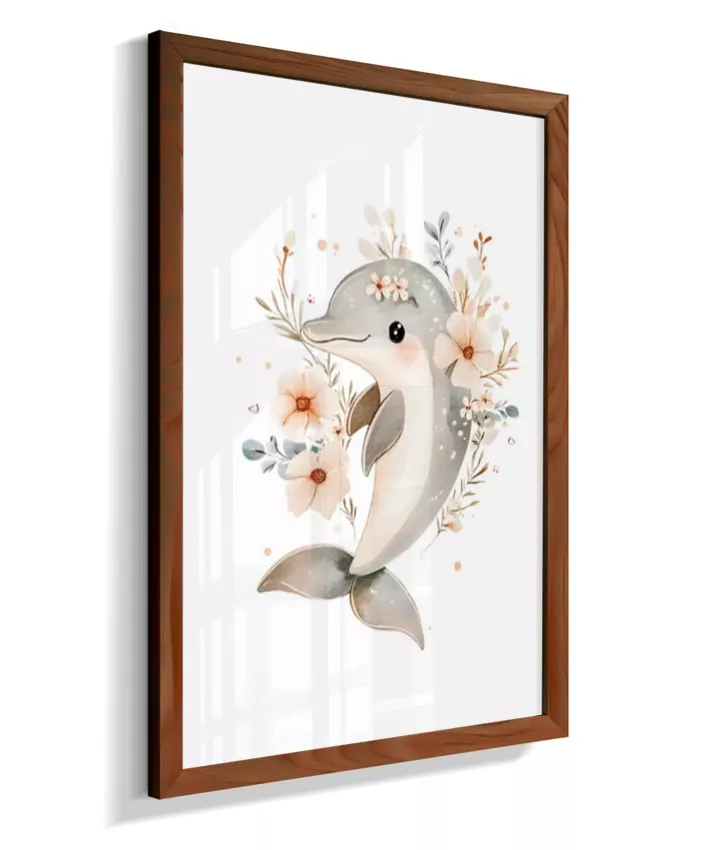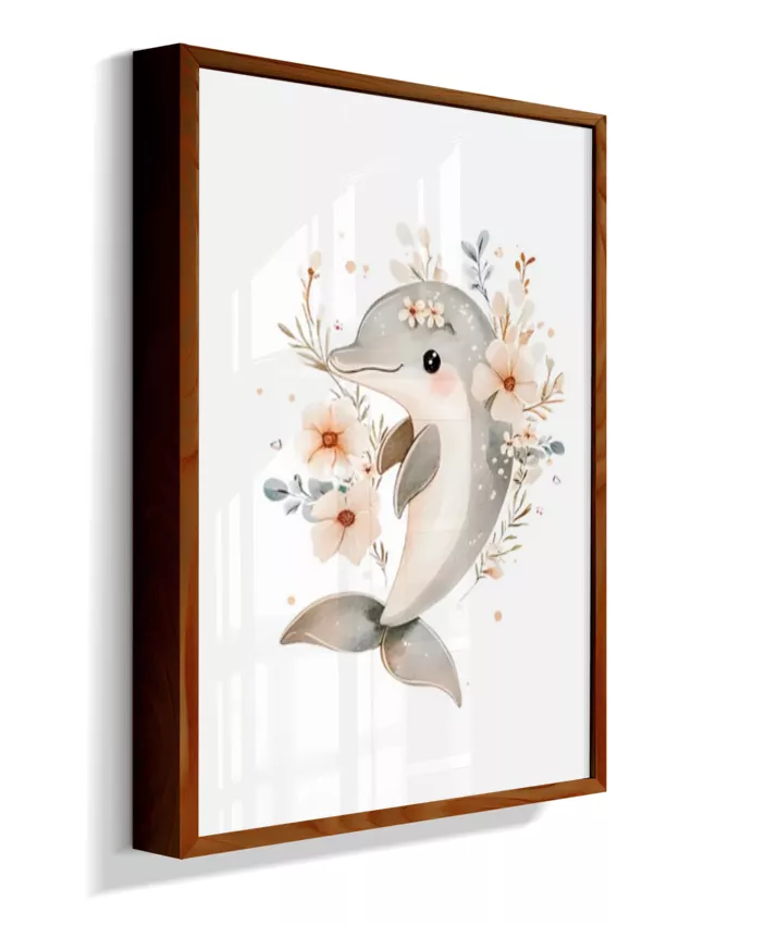 Quadro Infantil Decorativo Fundo do Mar Floral Golfinho
