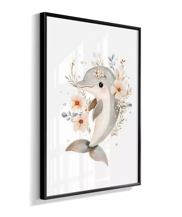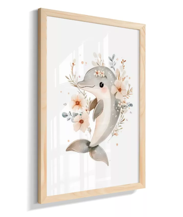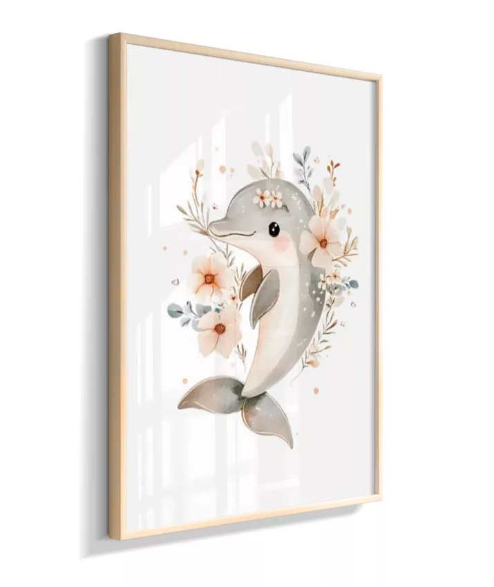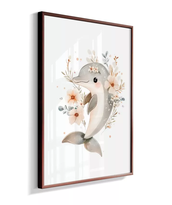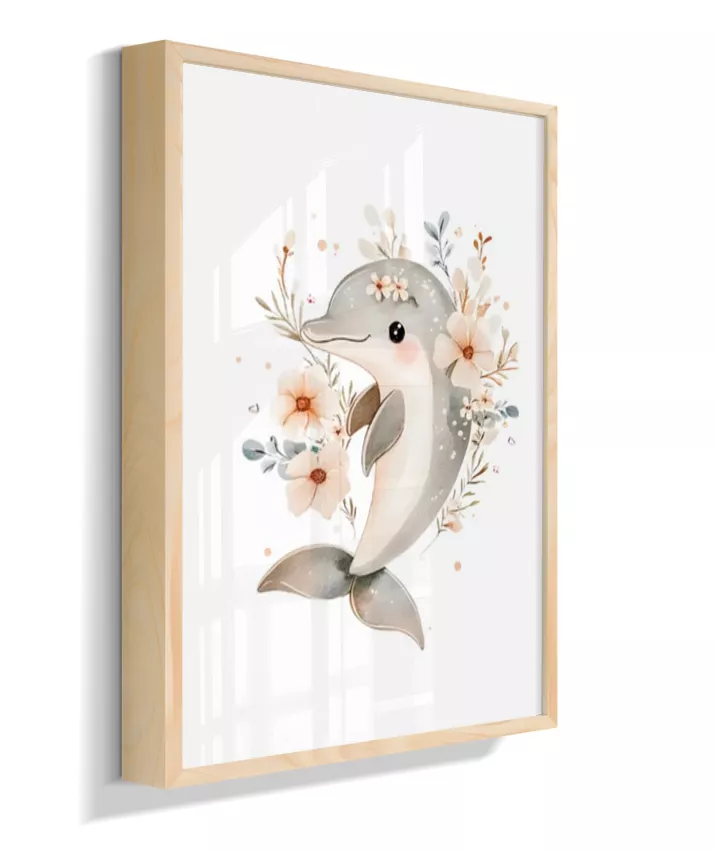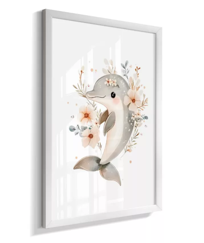 Quadro Infantil Decorativo Fundo do Mar Floral Golfinho