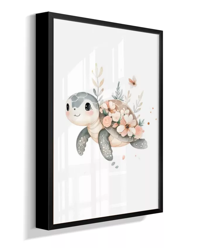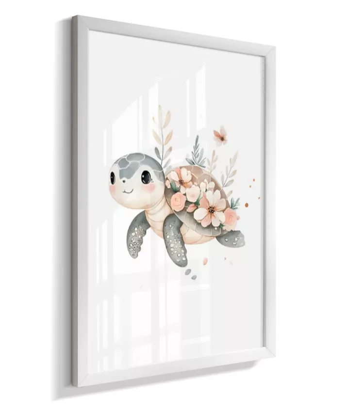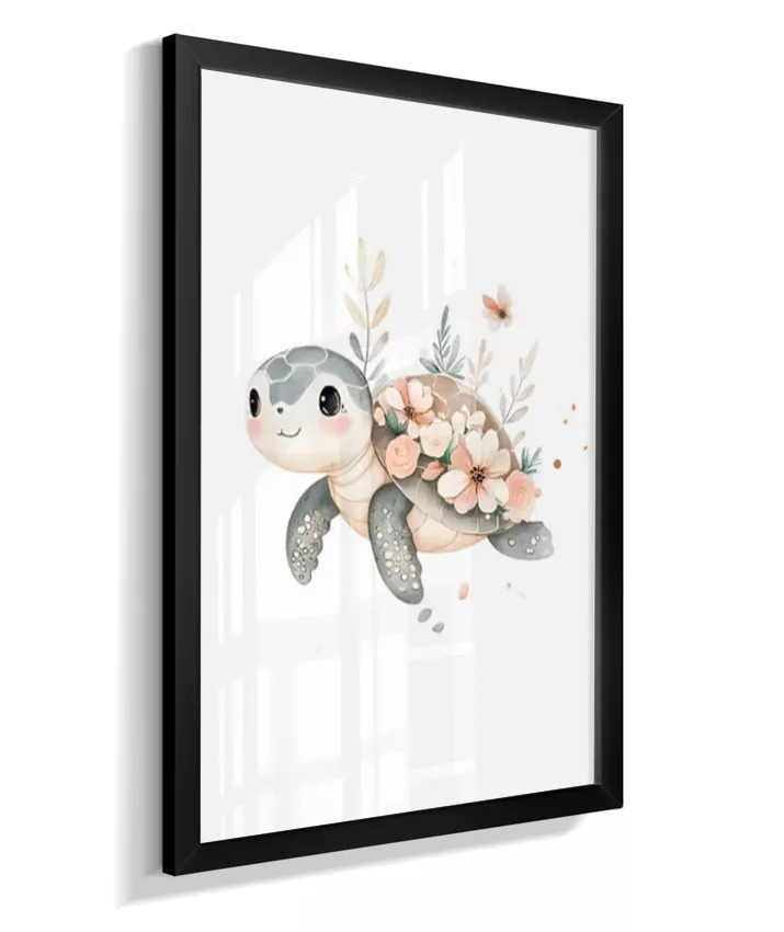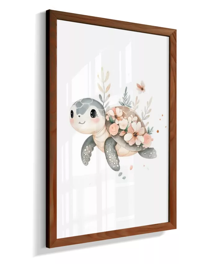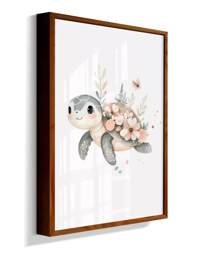 Quadro Infantil Decorativo Fundo do Mar Floral Tartaruga