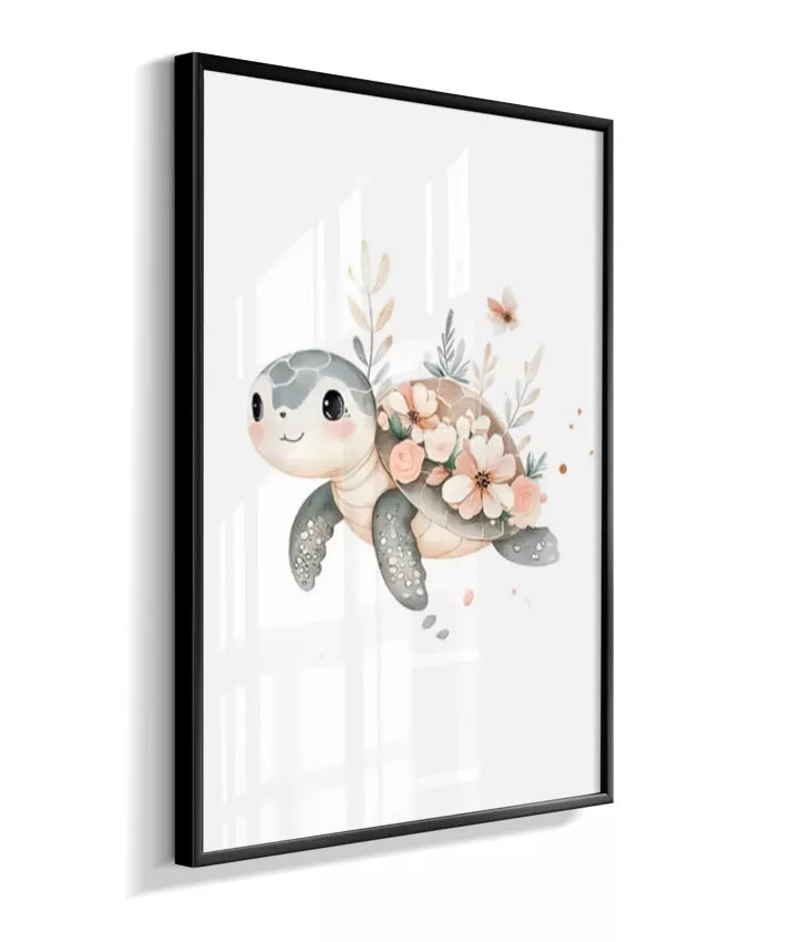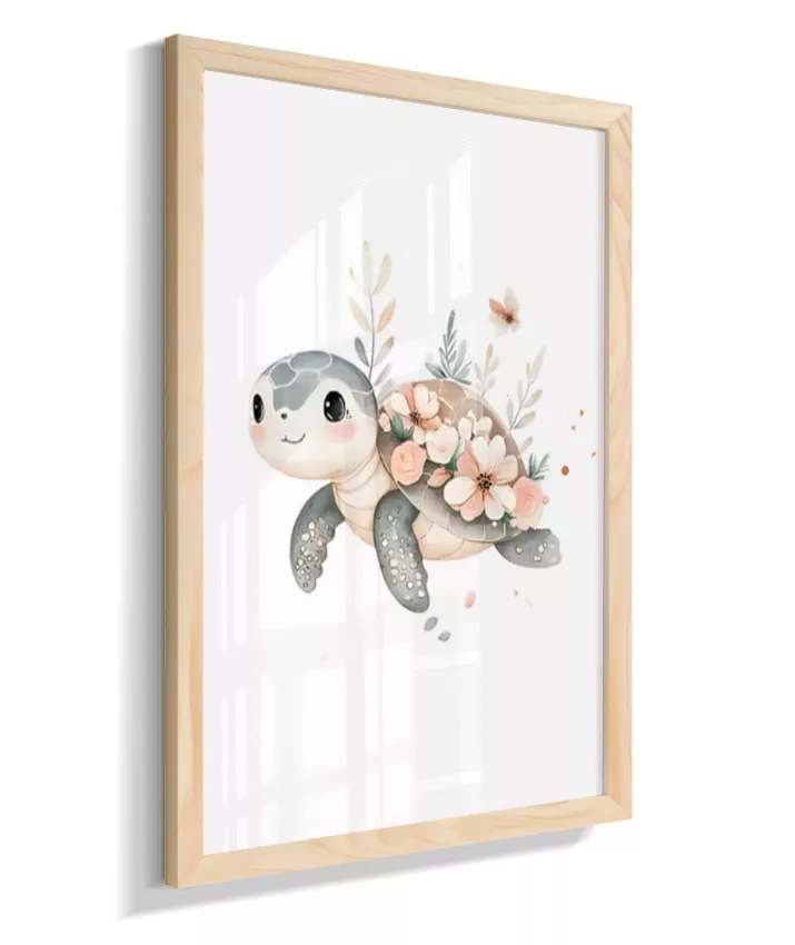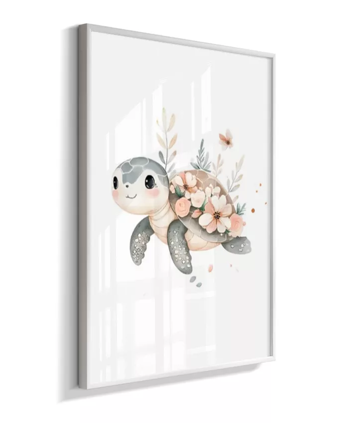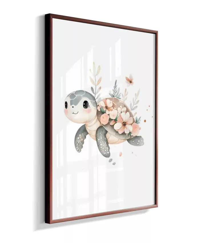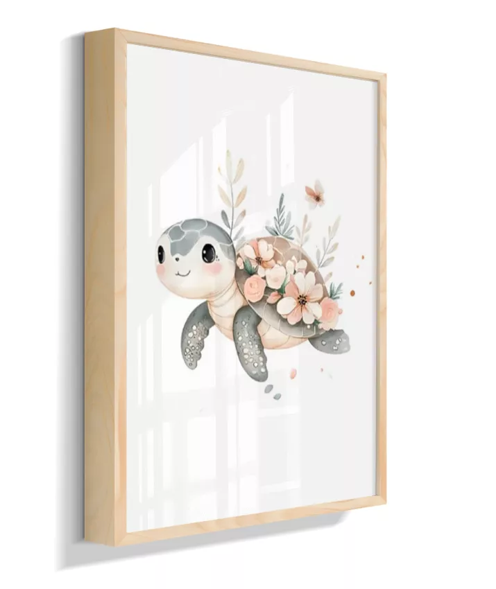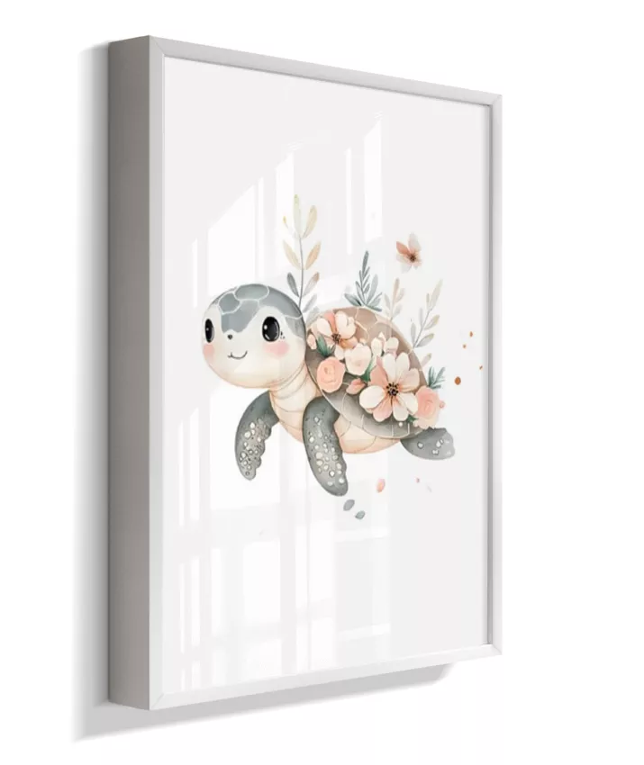 Quadro Infantil Decorativo Fundo do Mar Floral Tartaruga