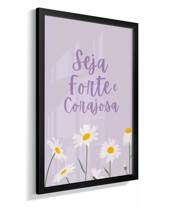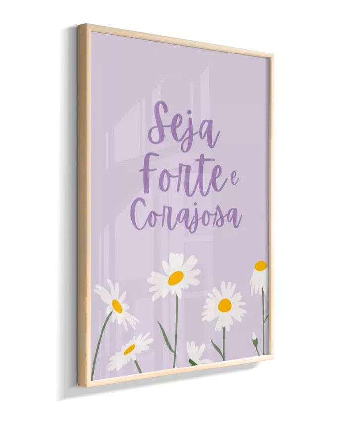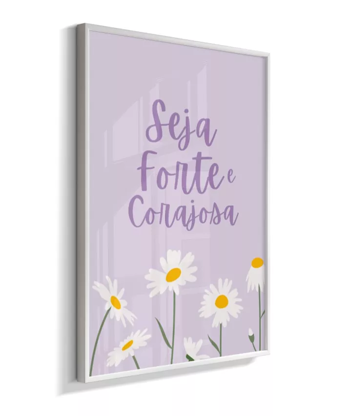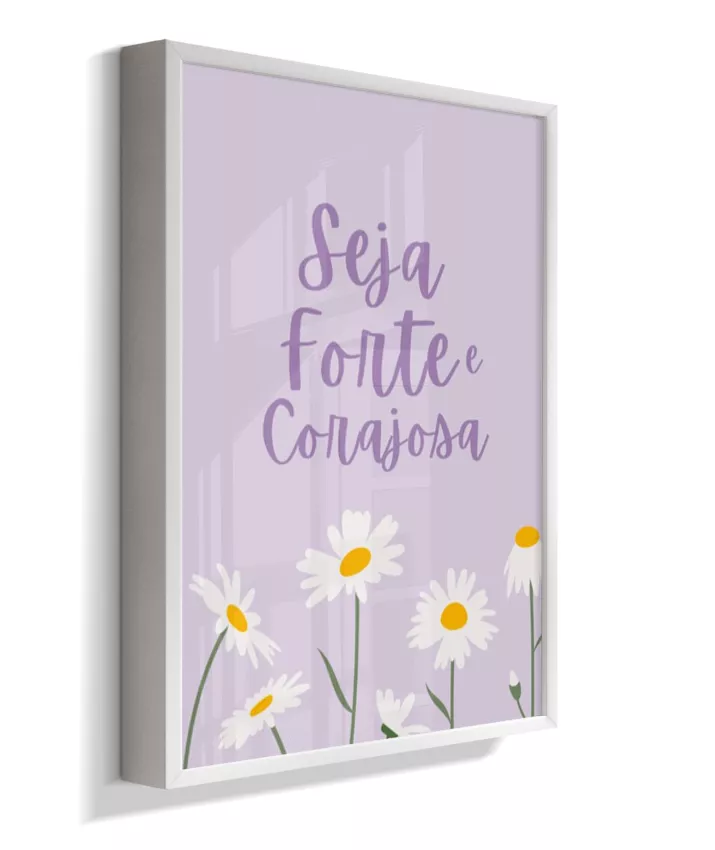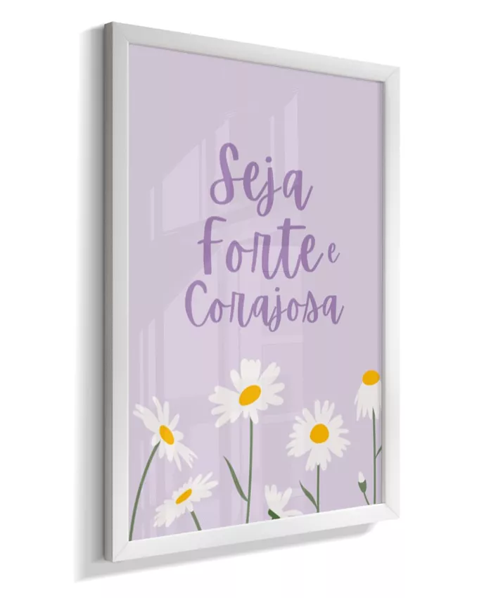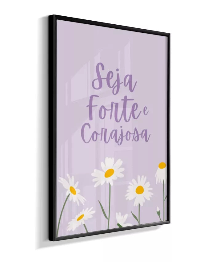 Quadro Infantil Decorativo Quarto Bebê Menina Lilás Seja Forte e Corajosa Margaridas