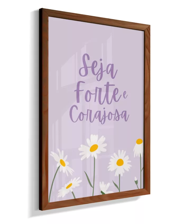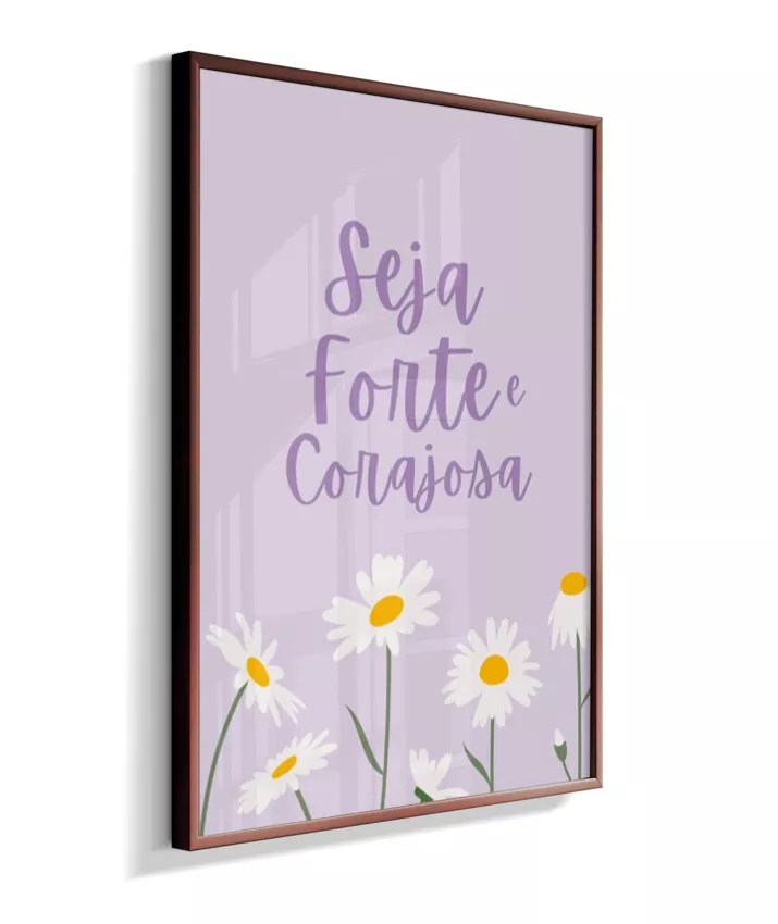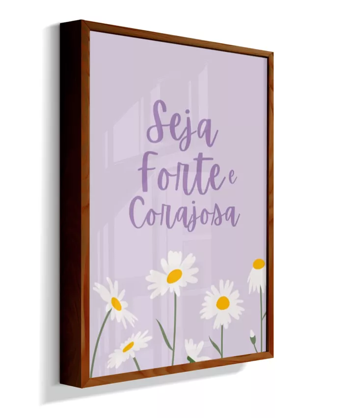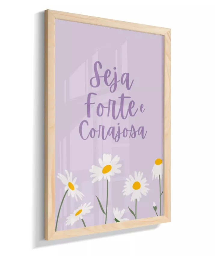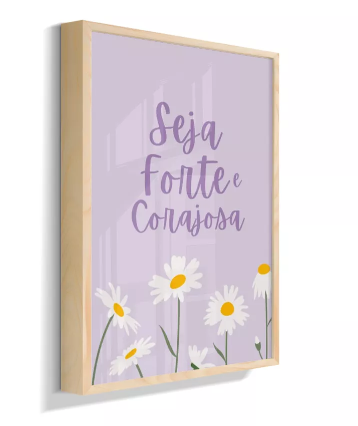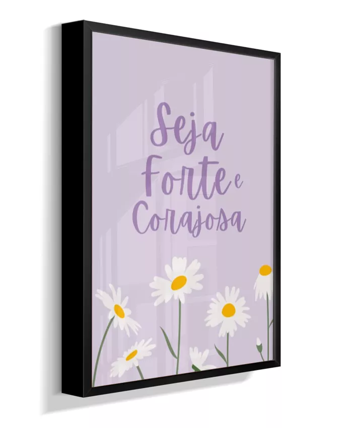 Quadro Infantil Decorativo Quarto Bebê Menina Lilás Seja Forte e Corajosa Margaridas
