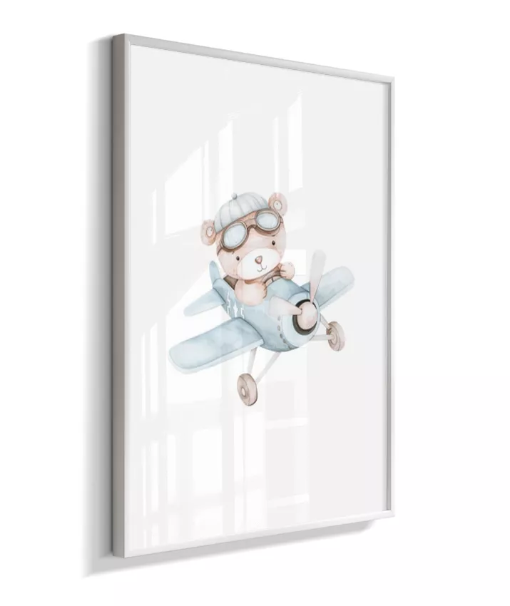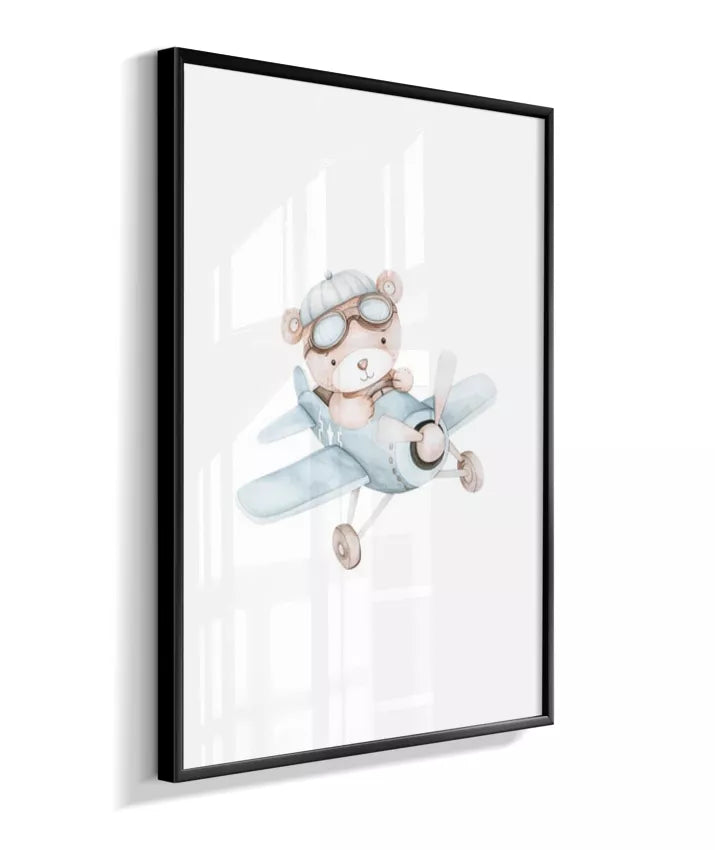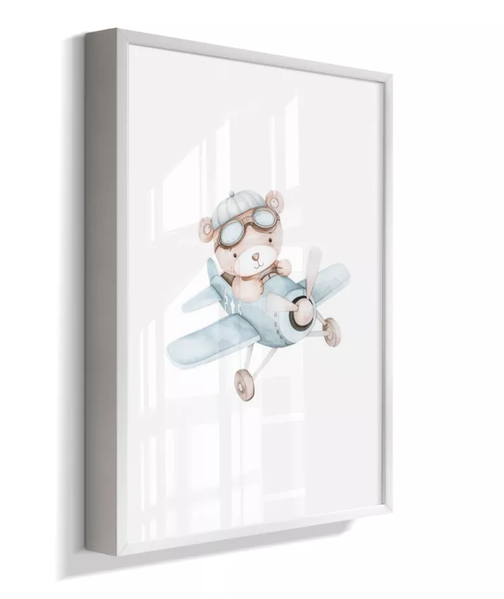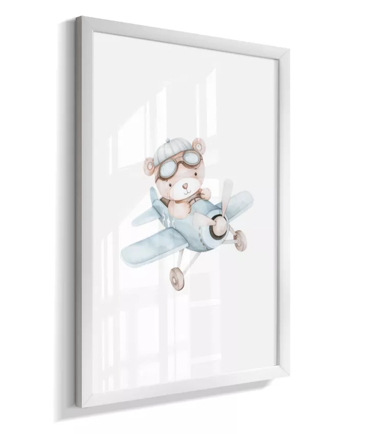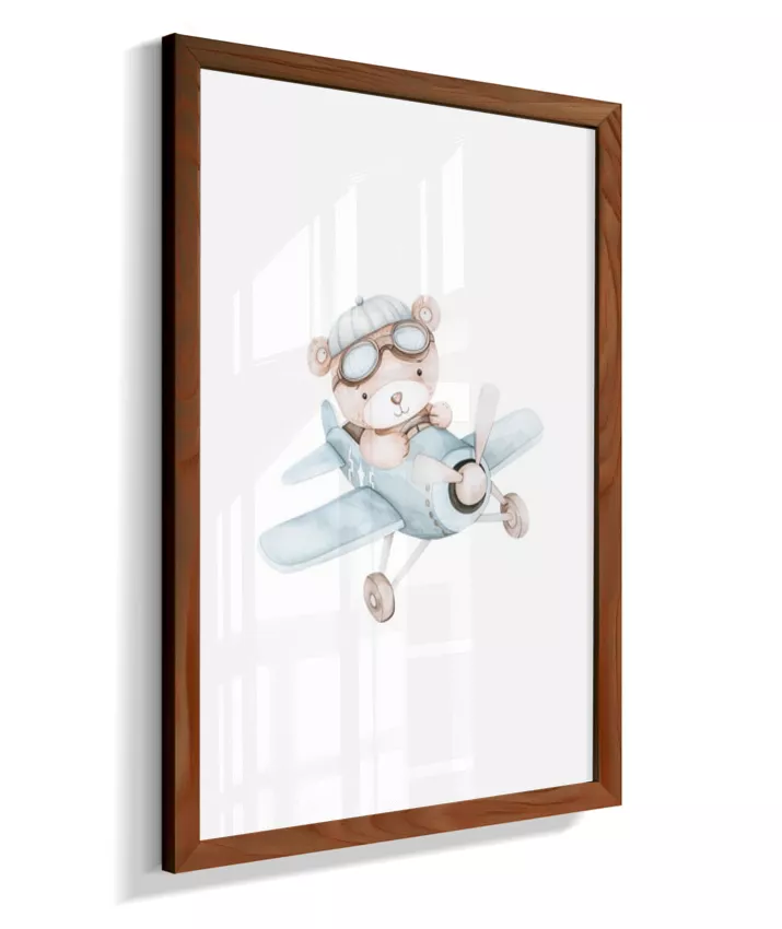Quadro Infantil Decorativo Quarto Bebê Menino Ursinho Aviador