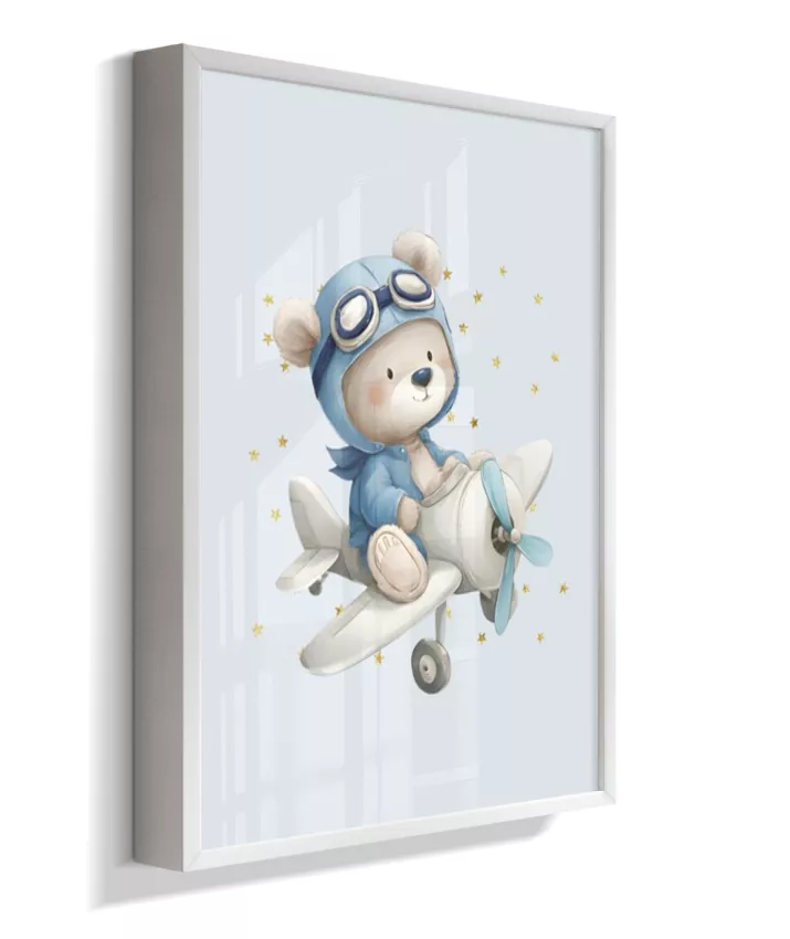 Todos os nossos quadros acompanham vidro acrílico cristal — um material leve, lindo e perfeito para quartos infantis, que não estilhaça.