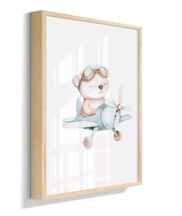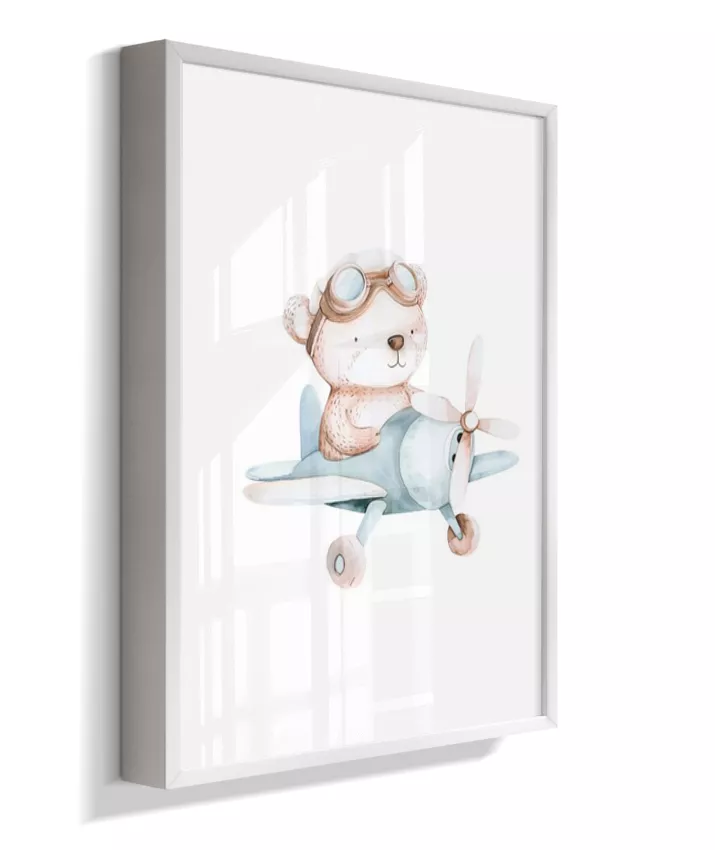 Todos os nossos quadros acompanham vidro acrílico cristal — um material leve, lindo e perfeito para quartos infantis, que não estilhaça.
