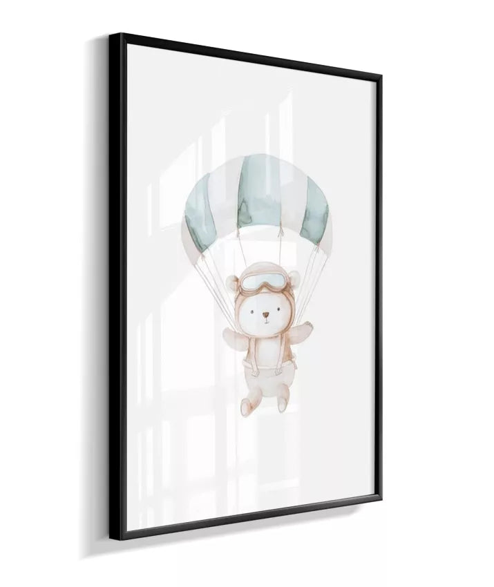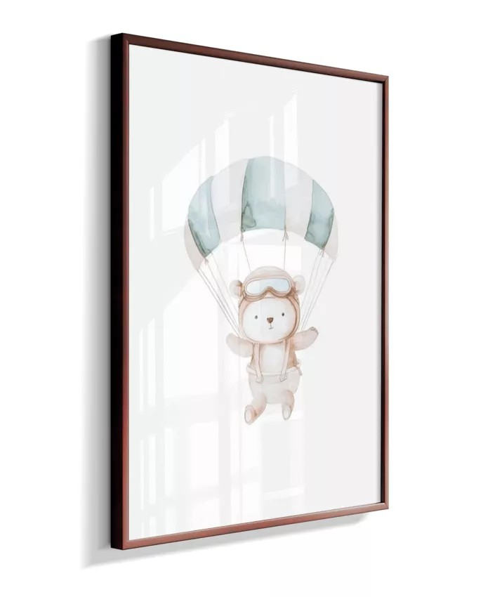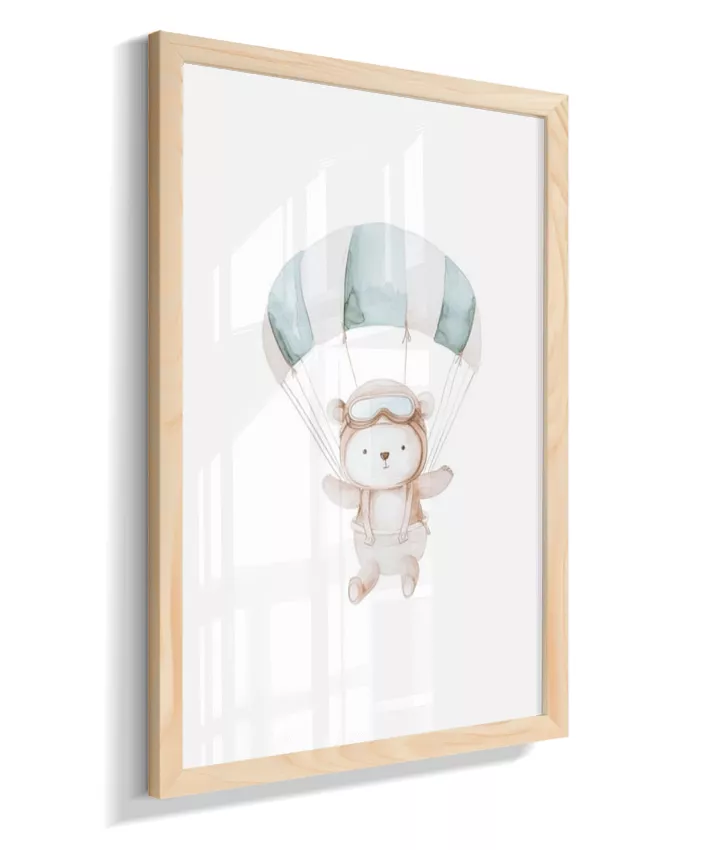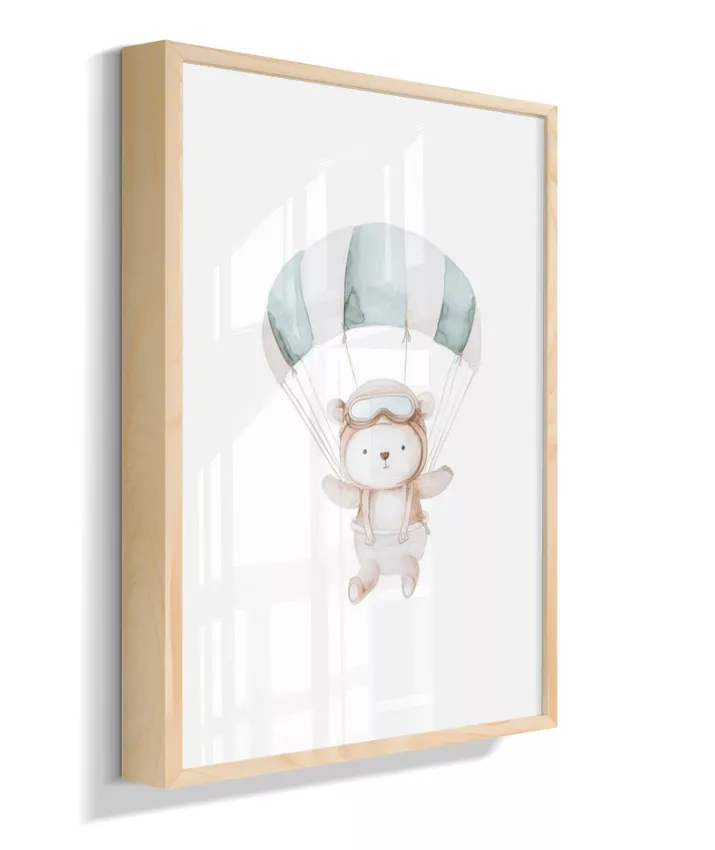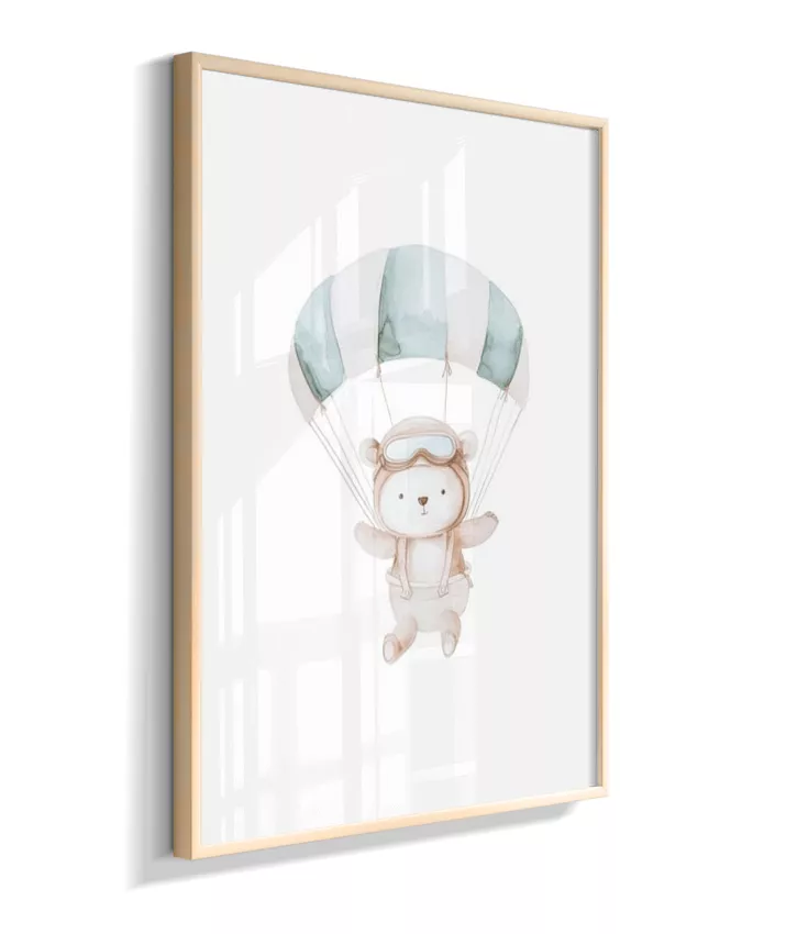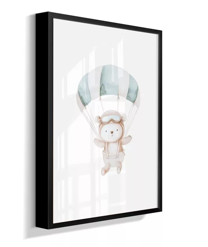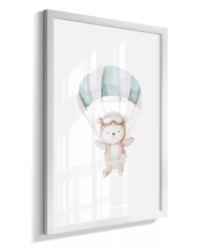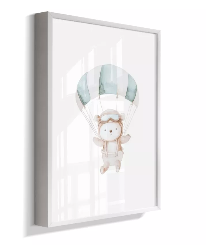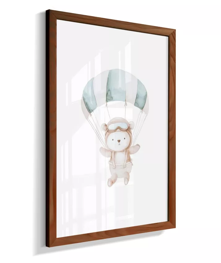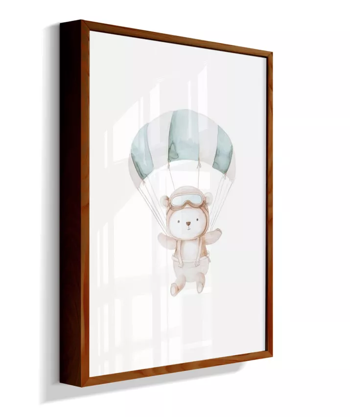 Quadro Infantil Decorativo Ursinho Aviador Paraquedas