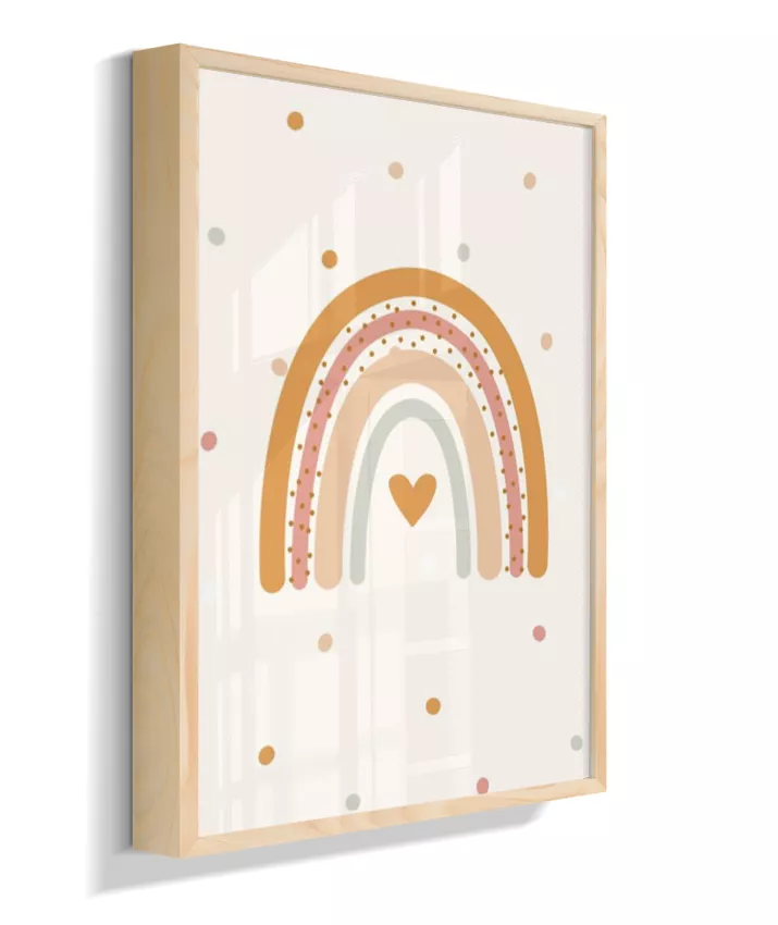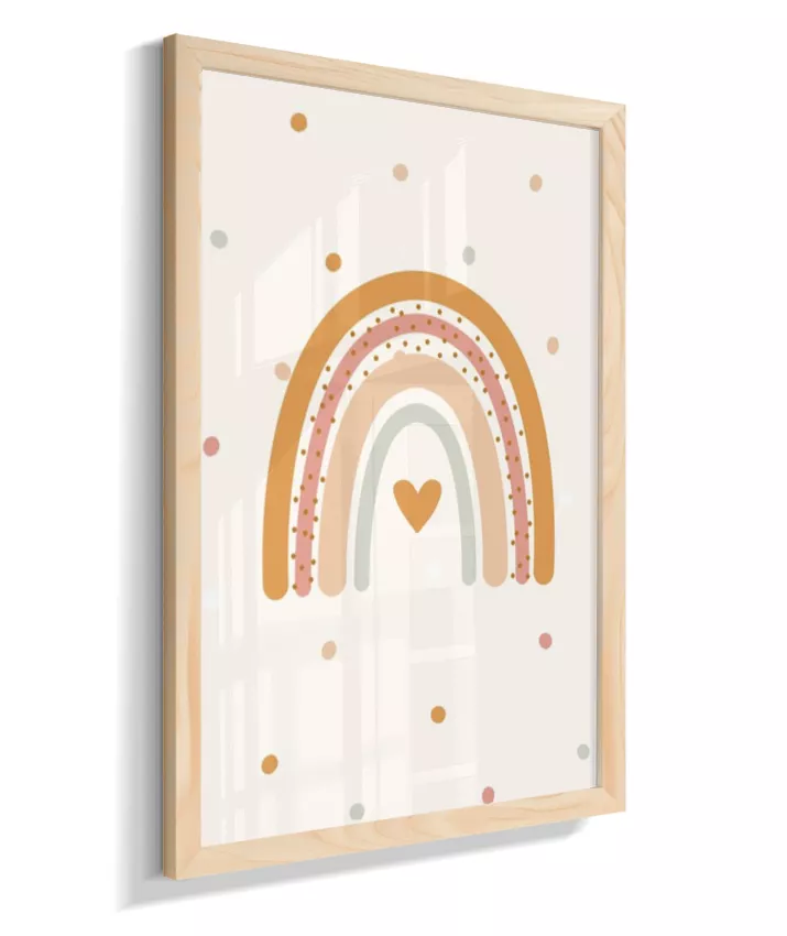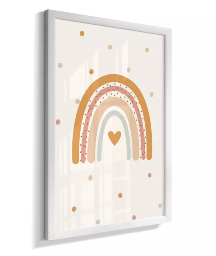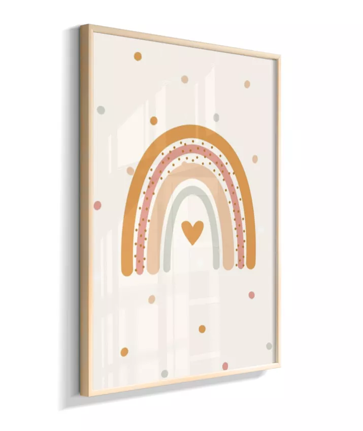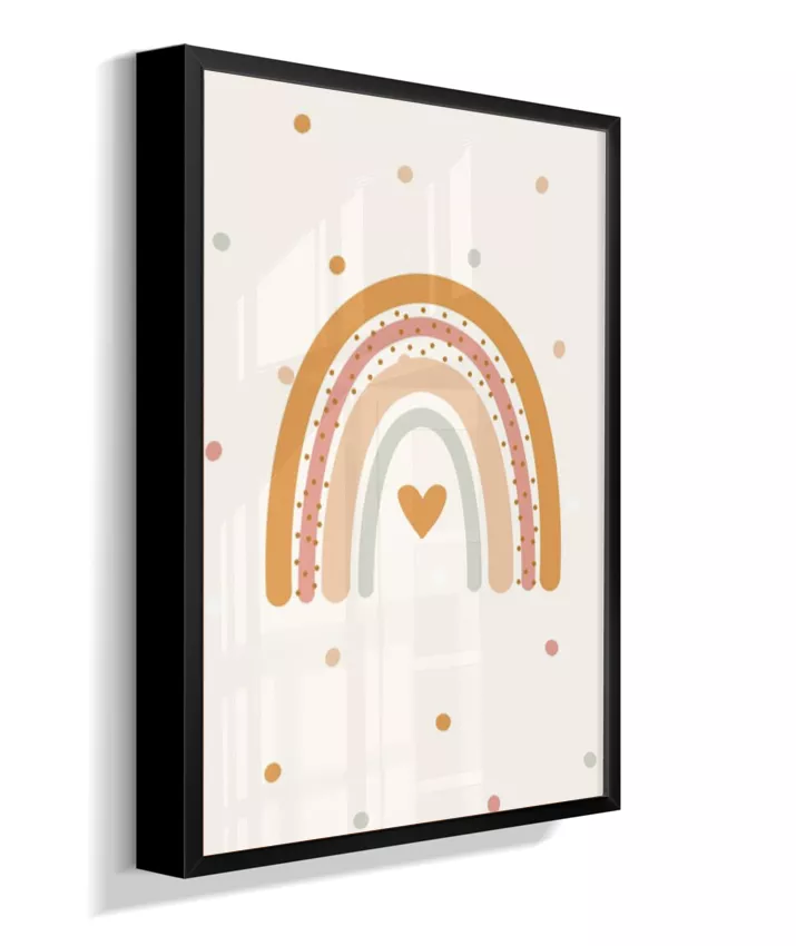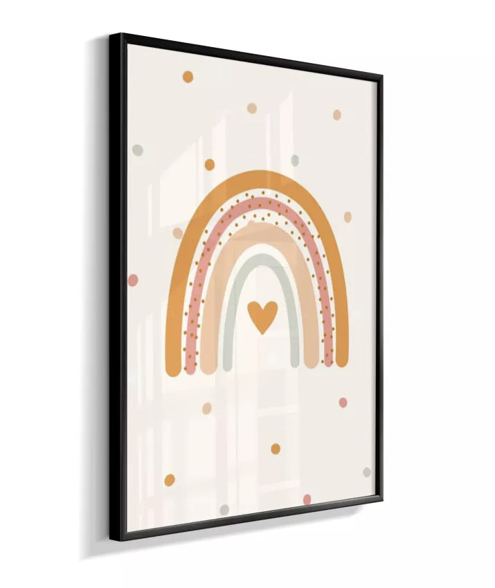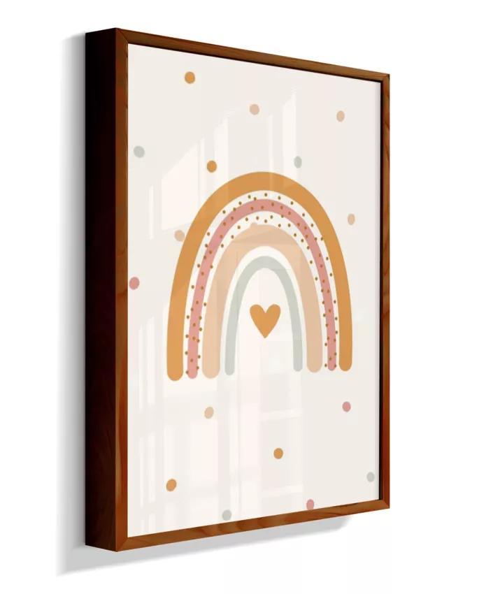 Quadro Infantil Quarto Bebê Arco-Íris Coração Boho