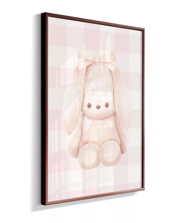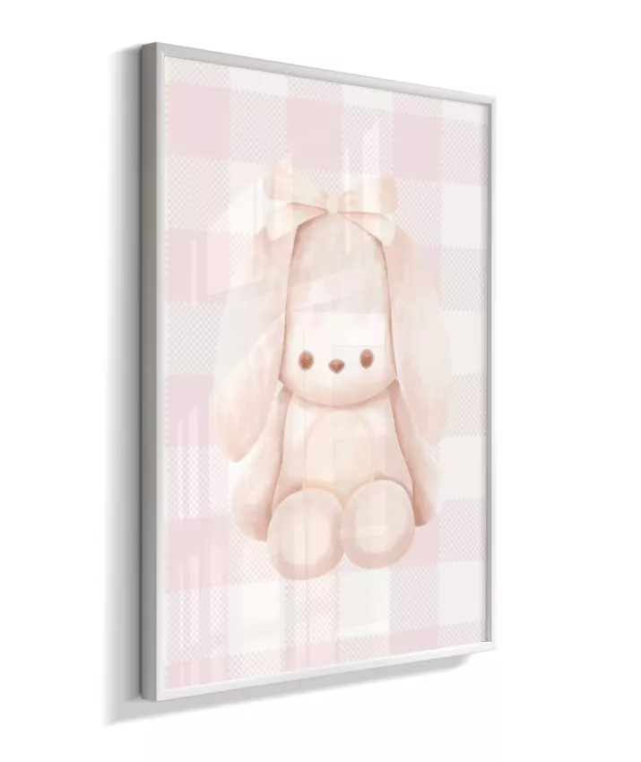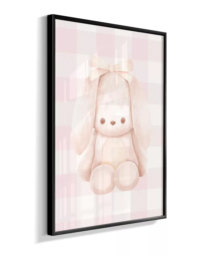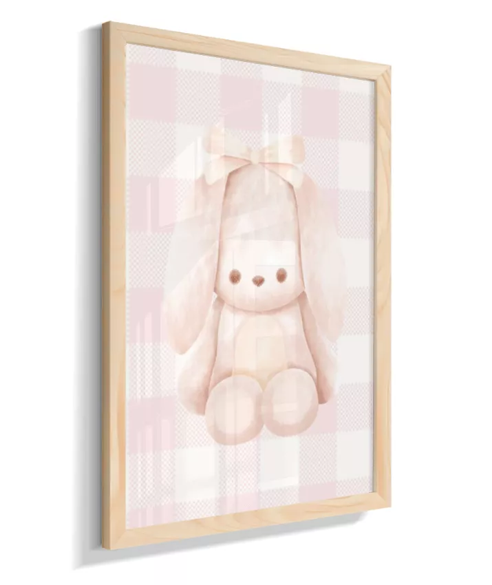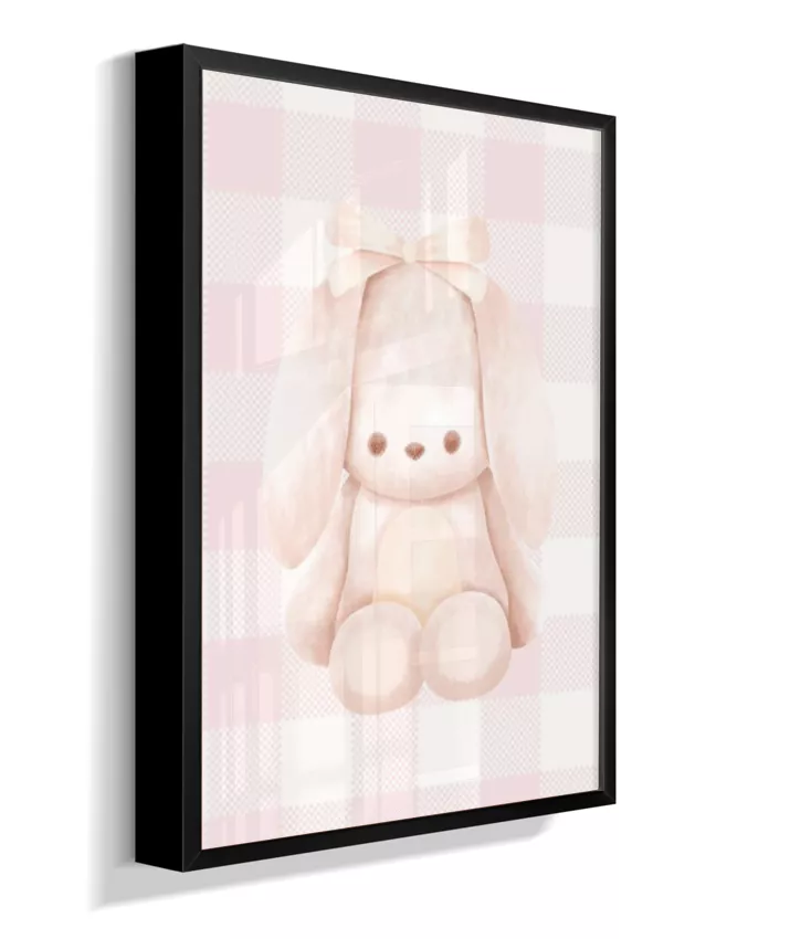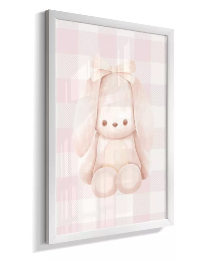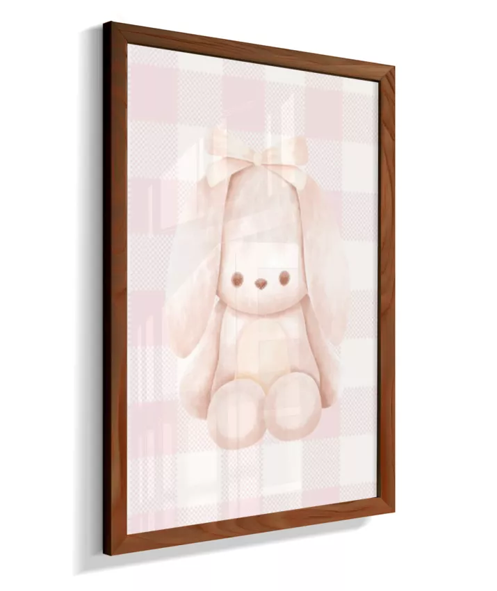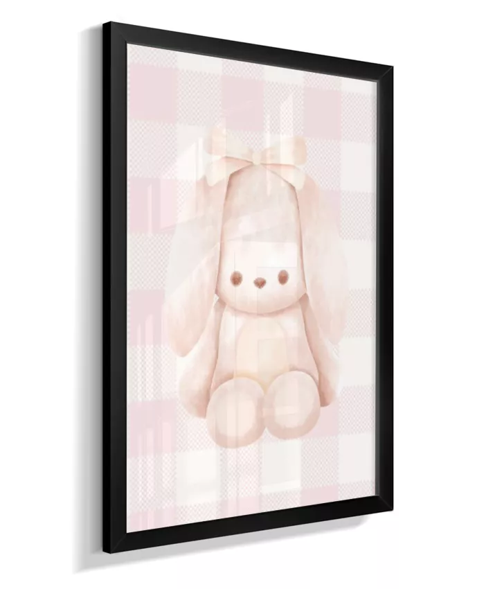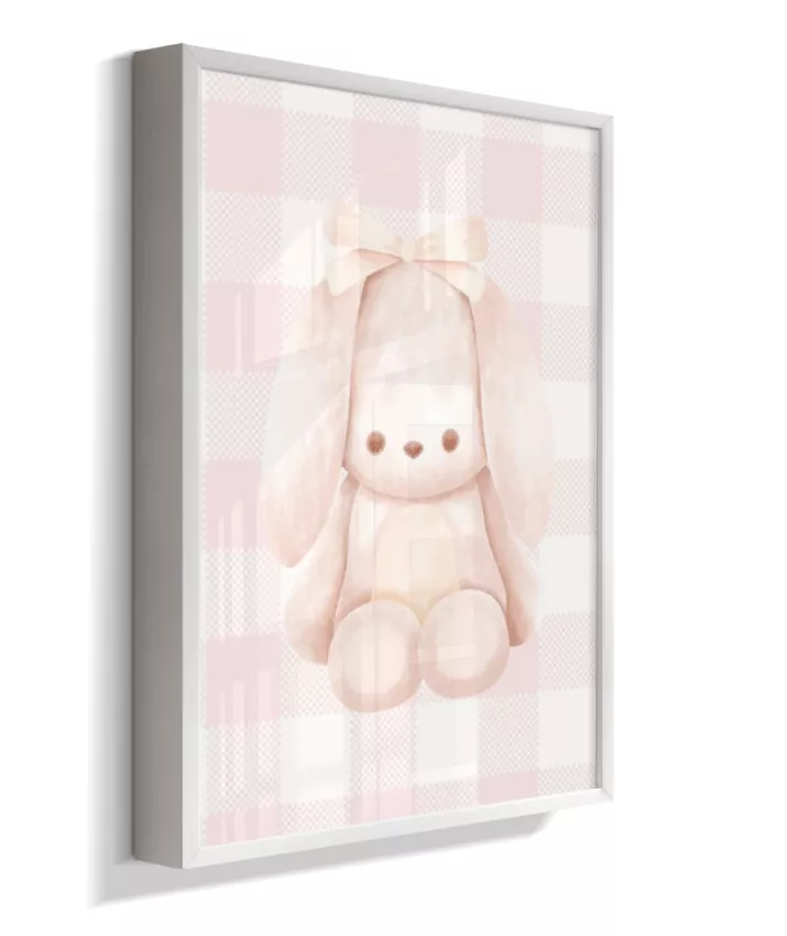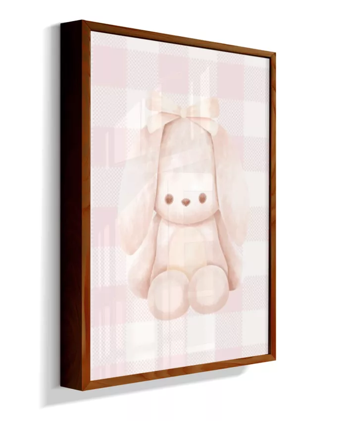 Quadro Infantil Quarto Bebê Menina Decorativo Ursinho Xadrex Rosa
