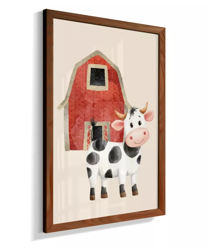 Quadro Infantil Quarto Bebê Vaca Fazendinha
